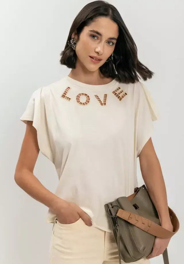Blusa confeccionada em malha Prime na cor Bege Alhambra. Apresenta modelagem reta, decote redondo e mangas curtas, garantindo conforto e praticidade para o dia a dia. O tecido macio e de toque agradável oferece leveza e versatilidade para composições casuais.