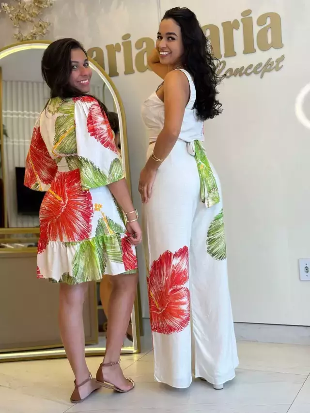 Vestido longo em Tecido Rayon Bali com estampa Hibiscos Bege, inspirado nas paisagens tropicais com toque de elegância natural. A peça possui decote em V, alças finas ajustáveis e recortes estratégicos que valorizam a silhueta. Com caimento leve e movimento fluido, é perfeito para ocasiões casuais ou produções mais elaboradas.